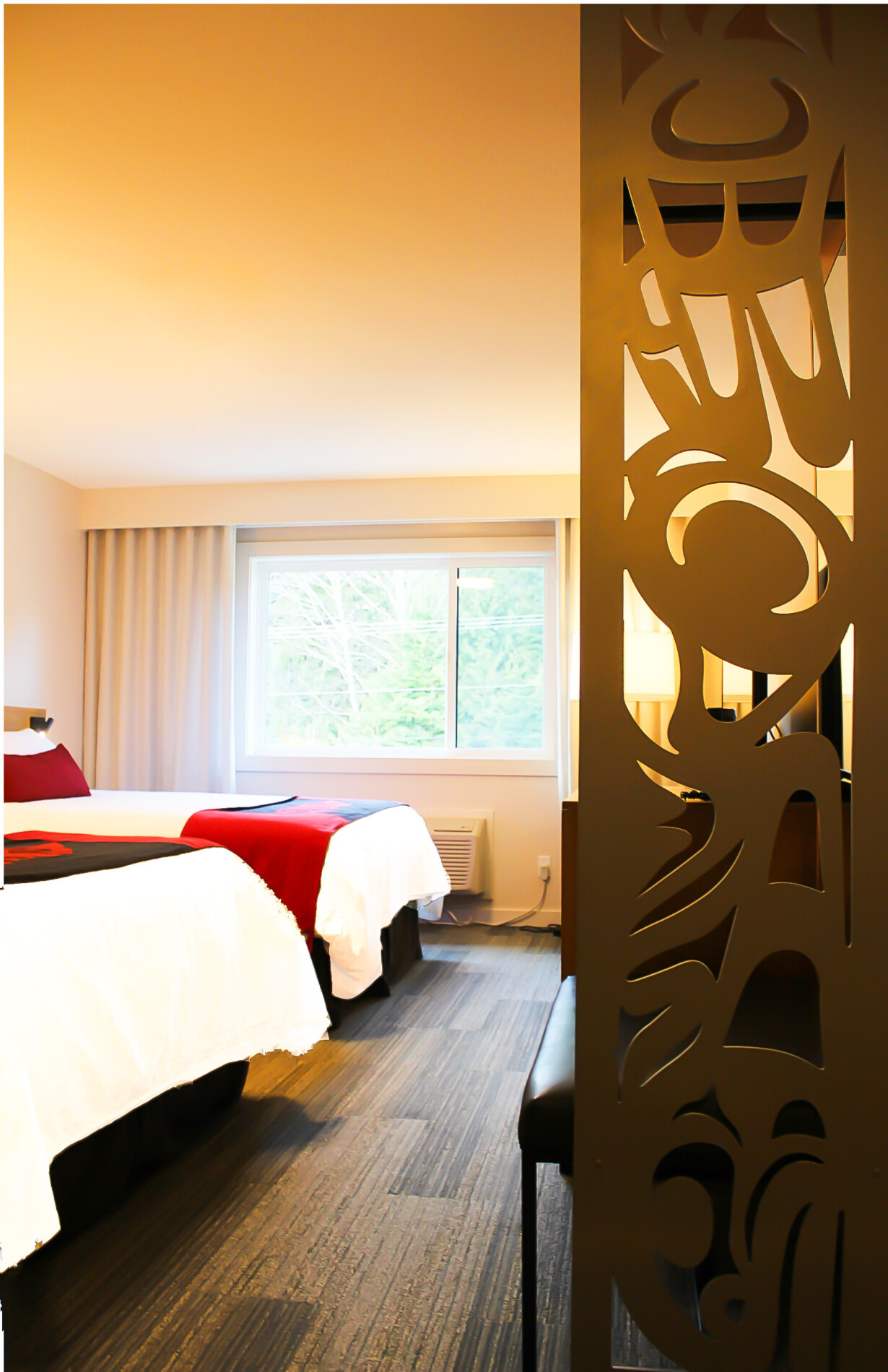 In 2017, K’awat’si Economic Development Group (KEDC) completed the full-scale renovation of the former Port Hardy Inn, transforming it into the Kwa’lilas Hotel—a premier cultural destination reflecting the rich heritage of the Gwa’sala-’Nakwaxda’xw Nations. Fully owned and operated by the Nation, the Kwa’lilas Hotel embodies a legacy project that offers guests an authentic experience of Indigenous culture, history, and hospitality. From the architectural design to unique cultural artworks and eco-tourism offerings, every element has been carefully crafted to honor and share the Nation’s traditions with visitors from around the world.
